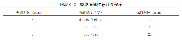C.3.1:固體廢物種類(lèi)較多,基體差異較大,在消解固體廢物時(shí)各種酸的用量、消解溫度和保持時(shí)間可視消解情況酌情增減。