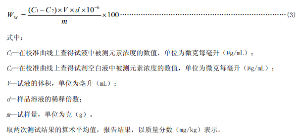 AFS法將標準物質(zhì)或校準溶液作為質(zhì)控樣品,每10個樣品測試一次,計算測量的準確度。如若需要,應(yīng)重新繪制校準曲線。