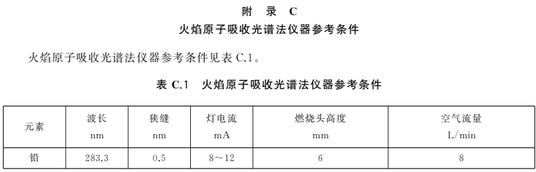 注:可根據(jù)儀器的靈敏度及樣品中鉛的實(shí)際含量確定標(biāo)準(zhǔn)系列溶液中鉛的質(zhì)量濃度。