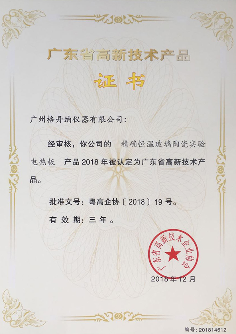 獲得《《廣東省高新技術(shù)產(chǎn)品》稱號(hào)-精確恒溫玻璃陶瓷實(shí)驗(yàn)電熱板》
