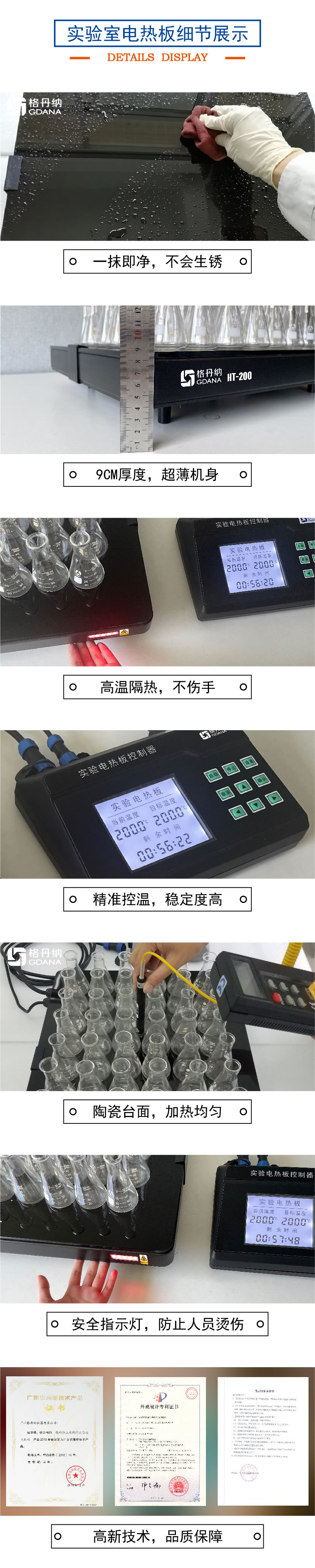 1.陶瓷加熱板的臺面是由玻璃陶瓷研制的,玻璃陶瓷耐的特性就是高溫不長銹,讓儀器可以長期使用都不會有什么變化。