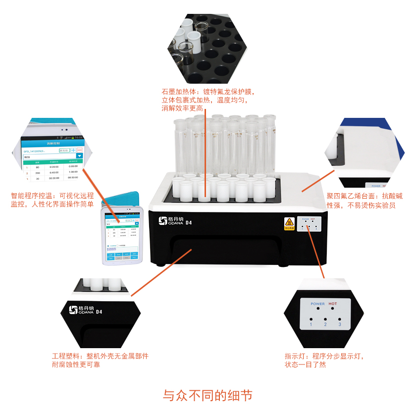 石墨消解儀配套適用于火焰原子吸收光譜儀,原子熒光光譜儀,ICP光譜儀,ICP-MS,極譜儀,測汞儀,化學(xué)分析法等前處理消解,快速完成前處理提高工作效率節(jié)省時間。