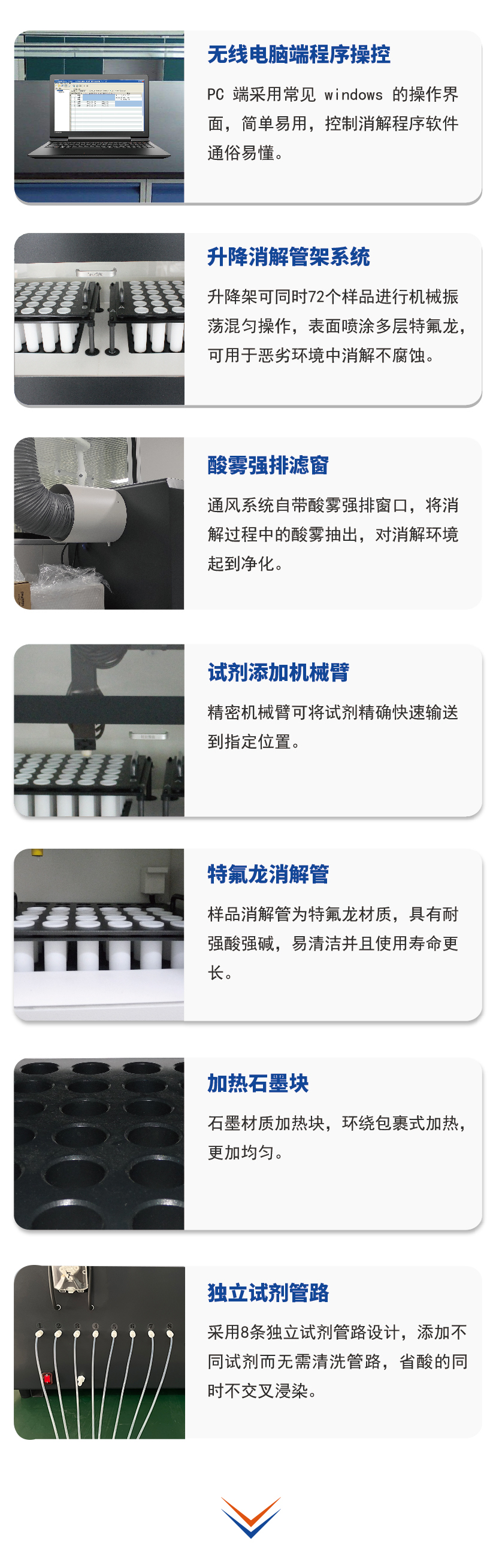 全自動完成加酸、消解、趕酸、定容、搖勻和酸氣排放,讓繁瑣的消解變得更加輕松,一鍵啟動,自動執(zhí)行后直接取樣上機分析。