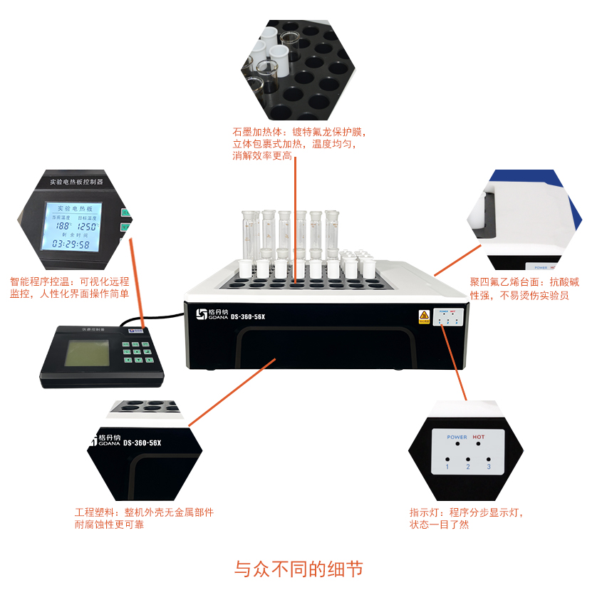 3.多孔設(shè)計,批量處理樣品,快速消解,節(jié)省時間。標(biāo)配有:36、39、56、60等不同型號,且支持定制。