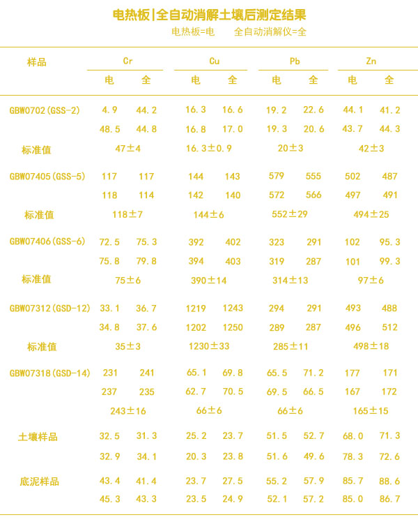 加熱板、全自動消解土壤后測定結(jié)果