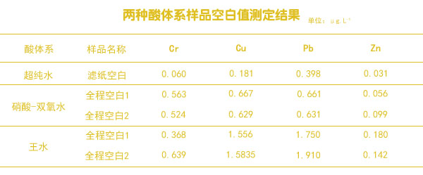 兩種酸體系樣品空白值測定結(jié)果