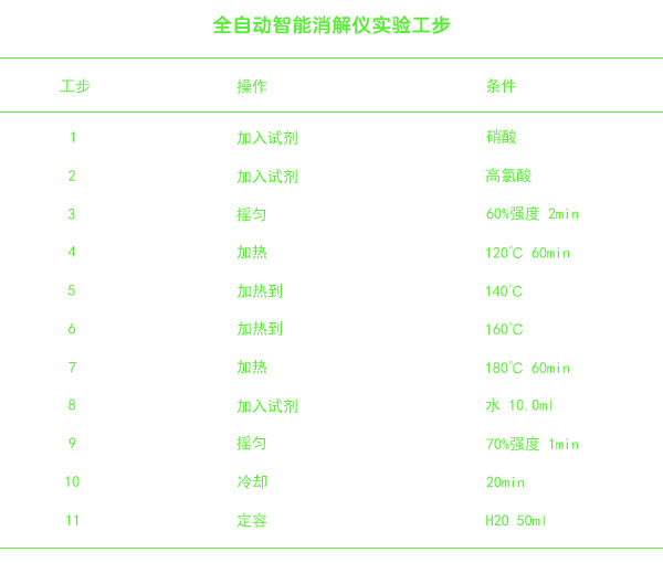 所有的樣品消解終點顏色均為無色透明。消解完全,進行元素檢測儀器進行進分析。實驗結(jié)果滿足標(biāo)準(zhǔn),全自動智能消解儀擁有72個孔可以對樣品進行大批量消解,消解過程自動完成加酸、振蕩、加熱、趕酸、定容,一鍵搞定;采用電腦進行遠程操作,人員無需直接接觸酸霧,實驗安全、方便。