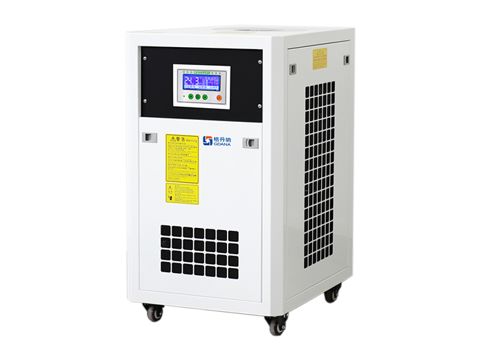 冷水機制冷系統(tǒng)將水箱內(nèi)的水冷卻,而后機器內(nèi)部的水泵把低溫的水注入需要冷卻的設備內(nèi)。水帶走機器內(nèi)部的熱量,變成高溫的水后回流到水箱進行降溫,如此循環(huán)交換冷卻,起到為設備冷卻的作用。