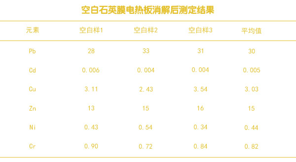 空白石英膜實(shí)驗(yàn)電熱板消解后測(cè)定結(jié)果表