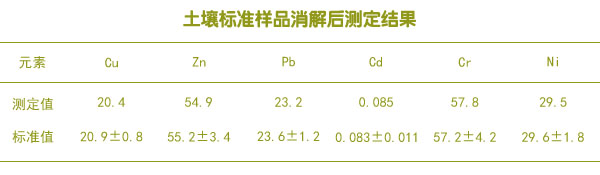 土壤標(biāo)準(zhǔn)樣品消解后測定結(jié)果