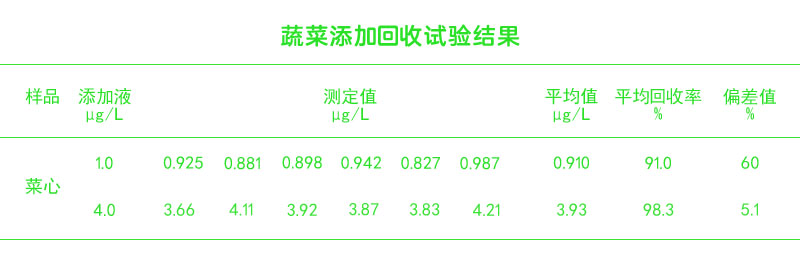 蔬菜添加回收試驗結(jié)果